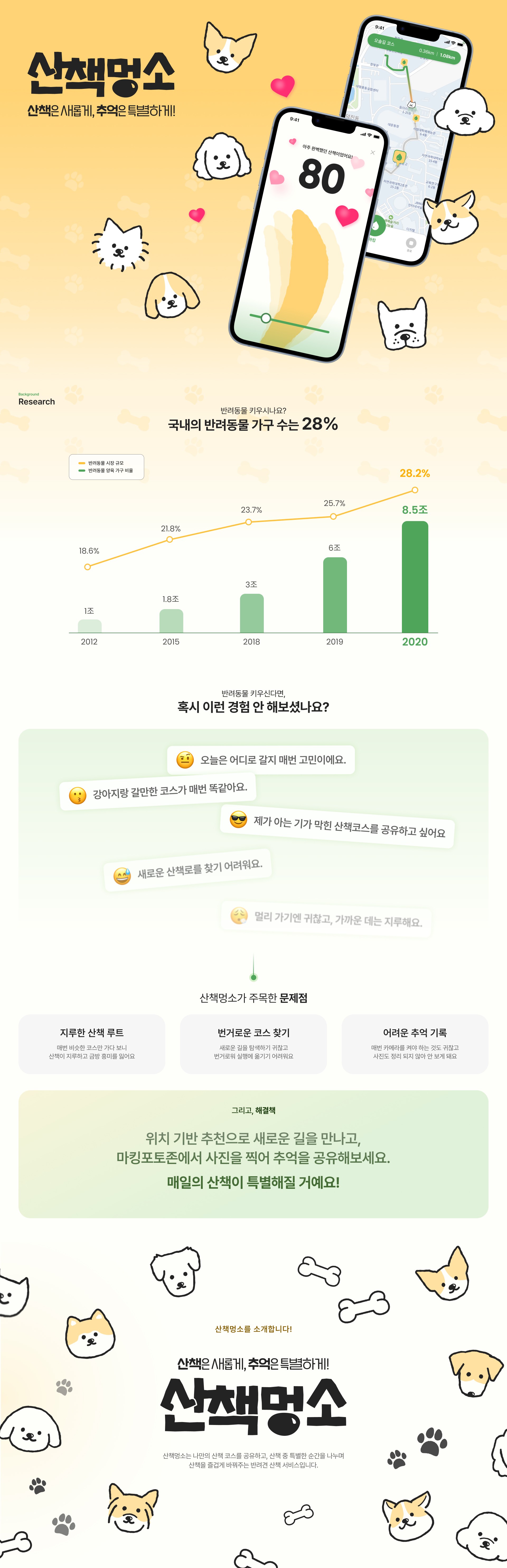 산책멍소는 나만의 산책 코스를 공유하고, 산책 중 특별한 순간을 나누며 산책을 즐겁게 바꿔주는 반려견 산책 서비스입니다. 코스 기록과 커뮤니티 기능을 통해 반려인들이 새로운 산책 경험을 발견하고, 일상의 산책을 더 의미 있는 시간으로 만들어줍니다.